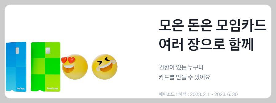 | 발급대상 | 모임장의 카드: 만 17세 이상, 토스뱅크 모임통장을 가지고 있는 고객 공동명의자의 카드: 만 17세 이상, 토스뱅크 통장을 가지고 있는 고객 |